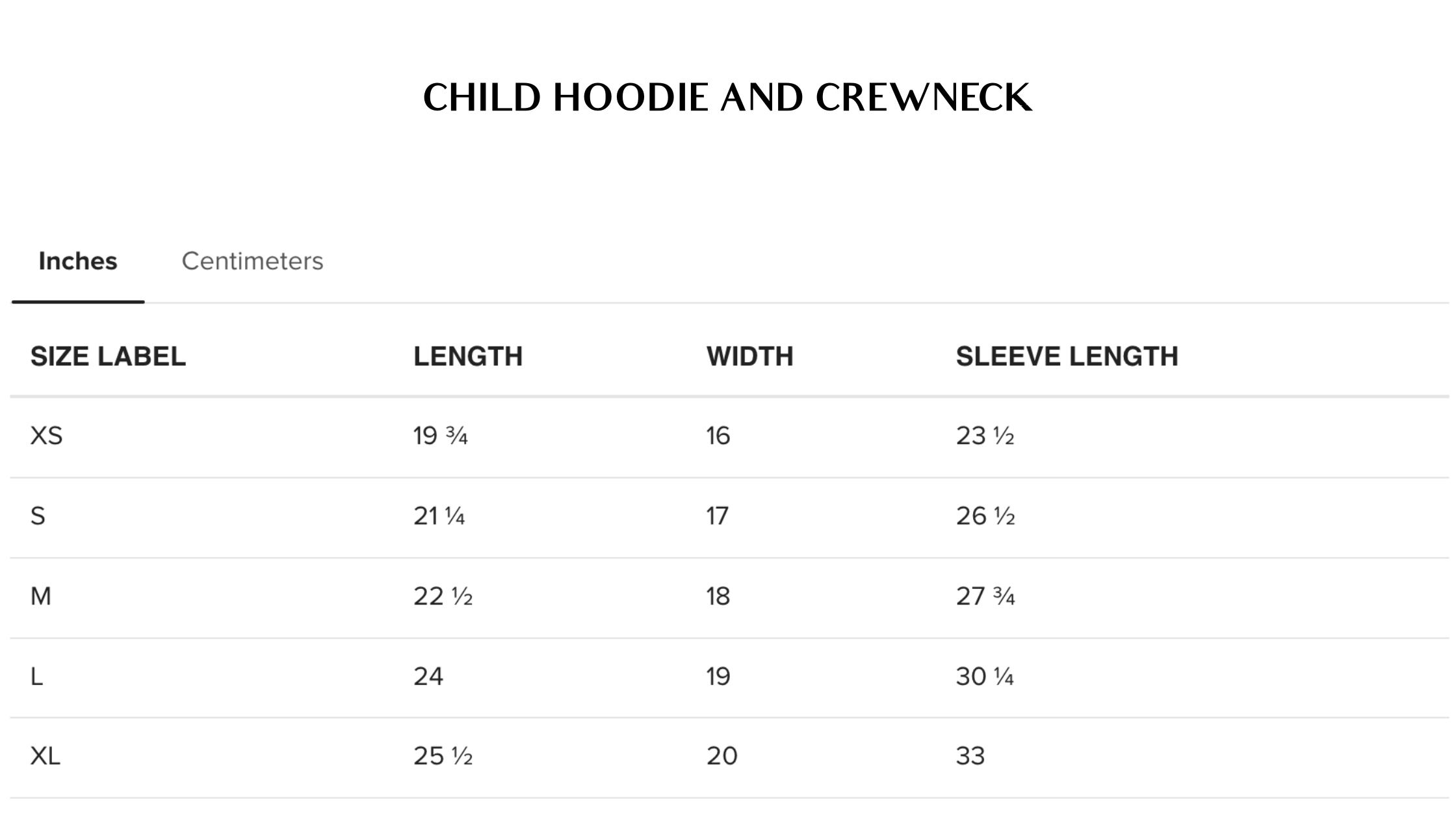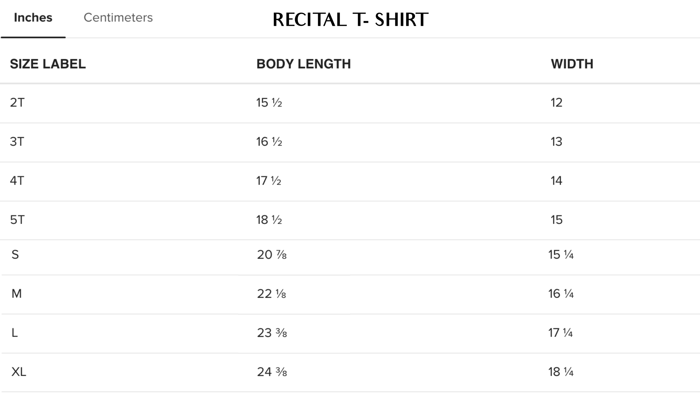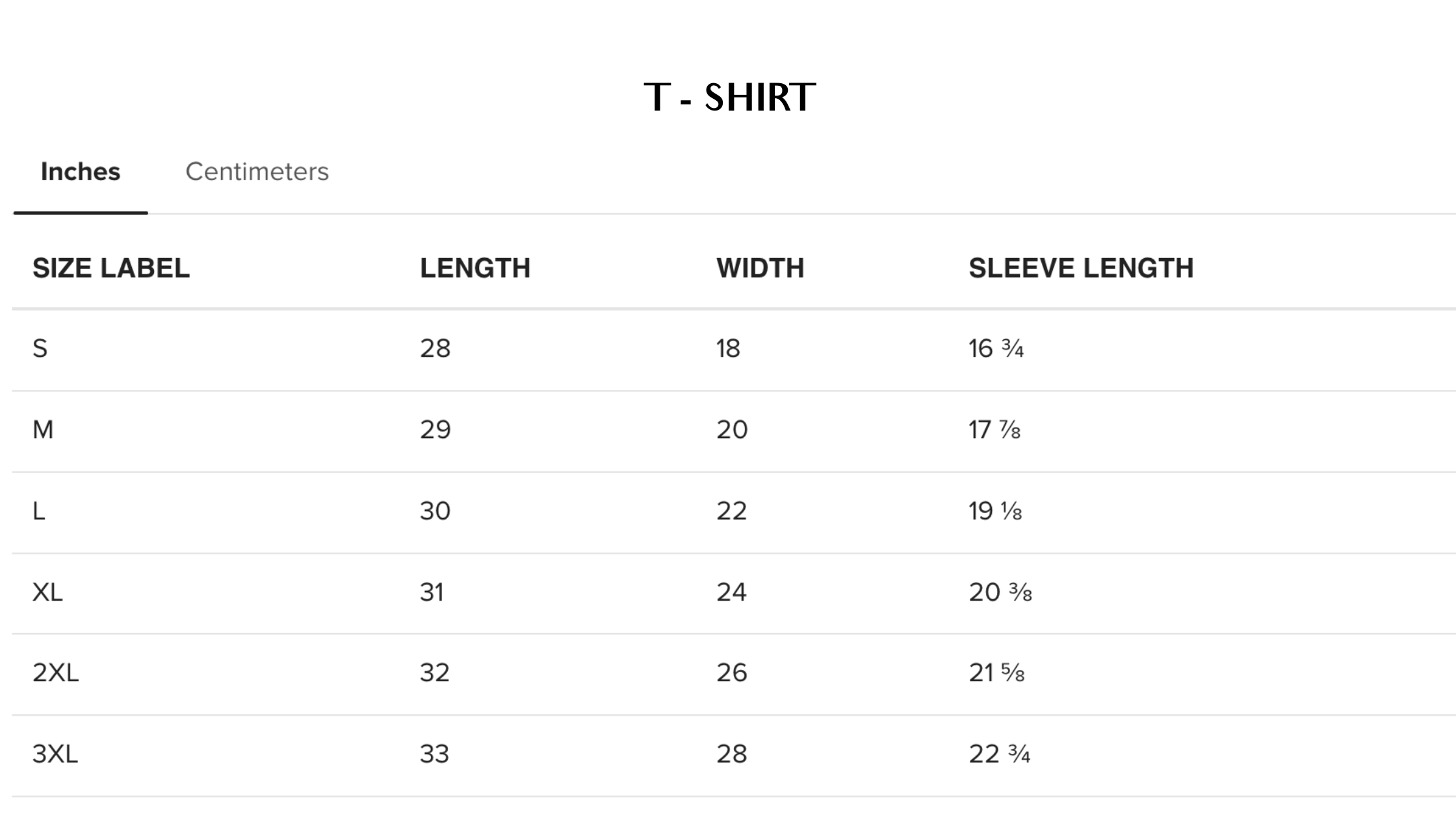 Size Measurements